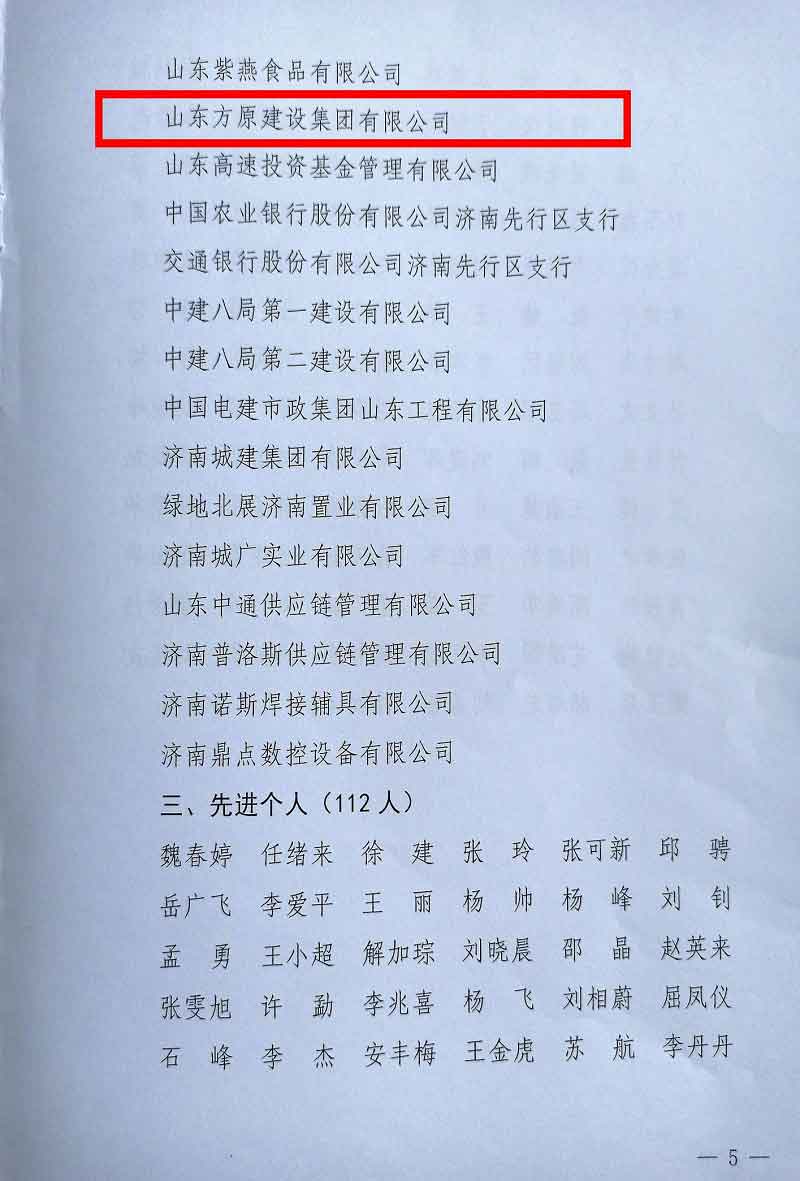 方原實業(yè)集團——山東方原建設(shè)集團有限公司榮獲濟南新舊動能轉(zhuǎn)換起步區(qū)2021年度“突出貢獻(xiàn)單位”。