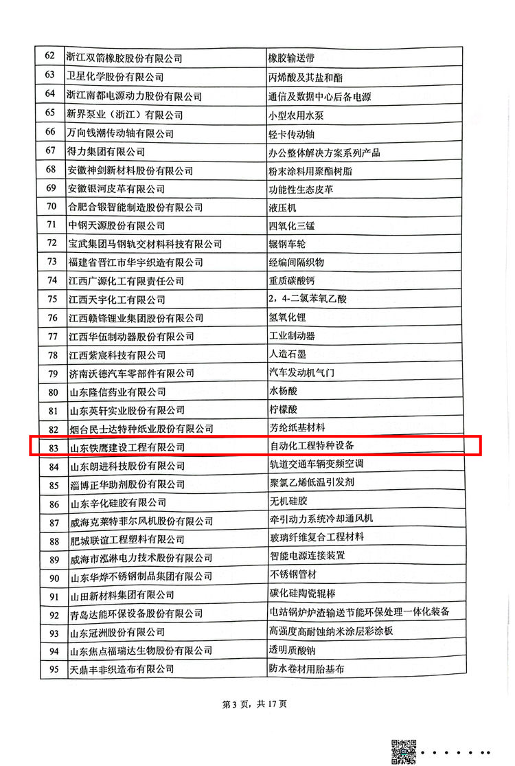 方原集團(tuán)——山東鐵鷹建設(shè)工程有限公司榜上有名,榮獲第七批制造業(yè)單項(xiàng)冠軍示范企業(yè)。