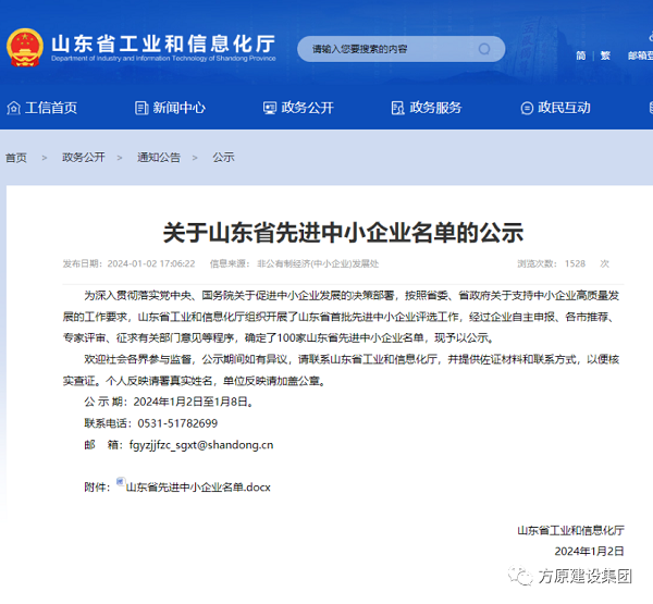 近日,山東省工業(yè)和信息化廳組織開展了山東省首批先進(jìn)中小企業(yè)評選工作,經(jīng)過企業(yè)自主申報、各市推薦、專家評審、征求有關(guān)部門意見等程序,方原集團(tuán)山東鐵鷹建設(shè)工程有限公司憑借卓越的業(yè)績、雄厚的技術(shù)實(shí)力、優(yōu)秀的管理團(tuán)隊(duì)、良好的社會聲譽(yù)成功入選山東省先進(jìn)中小企業(yè)名單。
