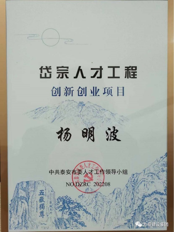 方原集團山東鐵鷹建設(shè)工程有限公司董事長楊明波同志憑借其卓越的創(chuàng)新成果和創(chuàng)業(yè)成就,成功通過了泰安市岱宗人才工程創(chuàng)新創(chuàng)業(yè)項目的評審!本項目全市共8人通過評審,岱岳區(qū)僅楊明波同志1人通過。