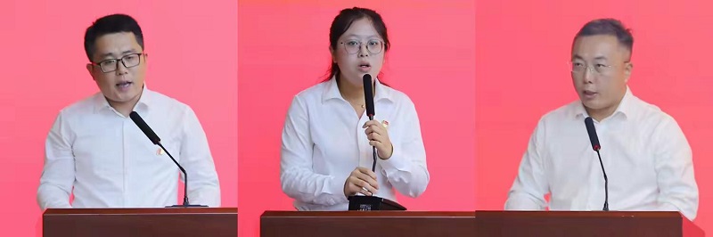 主題會上,優(yōu)秀黨員代表、項目第四黨支部委員、鋼結(jié)構事業(yè)部項目經(jīng)理寧吉凱;優(yōu)秀黨員代表、行政第一黨支部委員、財務部員工趙祥君;入黨積極分子代表、A1項目經(jīng)理白代柱表態(tài)發(fā)言 。