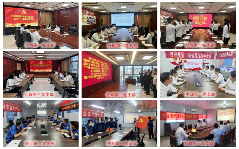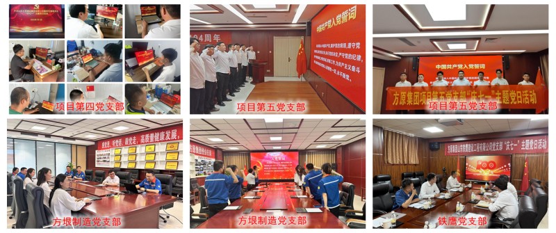 行政第一黨支部、行政第二黨支部、行政第三黨支部、項目第一黨支部、項目第二黨支部、項目第三黨支部、項目第四黨支部(線上開展)、項目第五黨支部、方垠制造黨支部、鐵鷹黨支部圍繞“慶祝黨的生日,我該怎么做”、“立足崗位作貢獻”、“黨建+項目”和“黨業(yè)深度融合”等主題組織開展專題座談會進行深入研討,認真組織黨員學習習近平總書記重要講話精神、講授專題黨課、深入學習研討企業(yè)文化,并集體重溫入黨誓詞等。