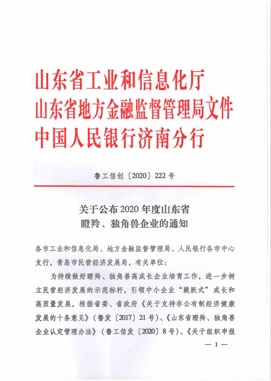 2020年度山東省瞪羚企業(yè)名單由山東省工信廳牽頭組織開展評選,經(jīng)企業(yè)自愿申報、各市中小企業(yè)主管部門推薦、專家評審、第三方信用評級、盡職調查、聯(lián)合終審等程序,共確定了372家企業(yè)。其中,山東鐵鷹建設工程有限公司在公布的瞪羚企業(yè)名單內。瞪羚企業(yè)具有成長速度快、創(chuàng)新能力強、專業(yè)領域新、發(fā)展?jié)摿Υ蟮奶卣魍ㄟ^推出新產(chǎn)品、提供新服務、應用新技術、拓展新市場、創(chuàng)建新模式或構建新業(yè)態(tài)等方式,實現(xiàn)高速成長。瞪羚企業(yè)已然成為區(qū)域經(jīng)濟發(fā)展的晴雨表、創(chuàng)新發(fā)展的新引擎。2020年入選的山東省瞪羚企業(yè)主要是以面向市場主體,加強示范帶動,以發(fā)展新技術等為方向,以智能制造、工業(yè)強基等為重點,著力打造新標桿、培育新動能、引領新躍升,助力推動新舊動能轉換和經(jīng)濟高質量發(fā)展。